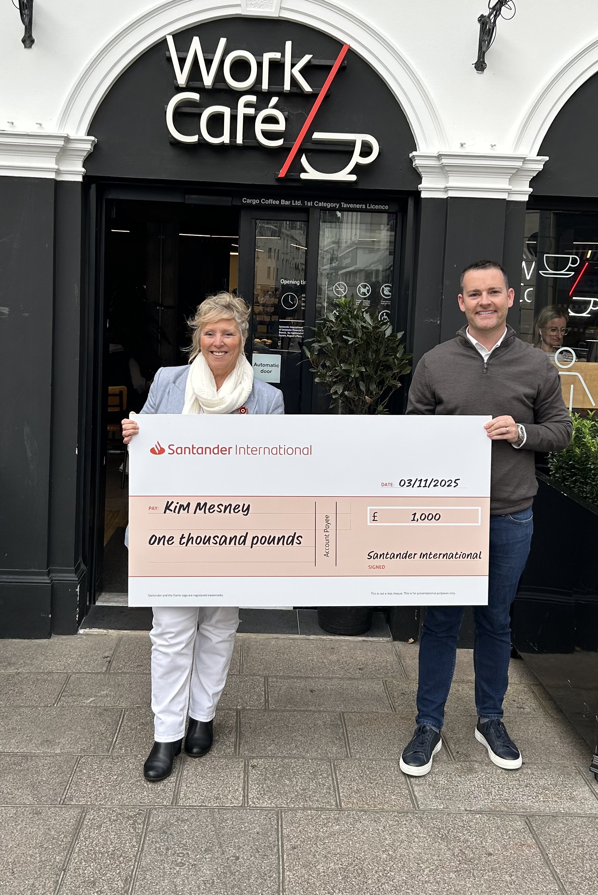 Kim was presented with her £1,000 prize by John Burns our Work Café Director and is already planning a New Year getaway – the perfect way to beat the January blues!